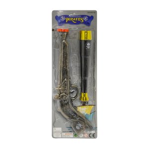 Pirátská pistole s dalekohledem je ideální výbavou pro malé dobrodruhy! Lehký plast s hladkými hranami zajišťuje bezpečné hraní, zatímco pistole a dalekohled podpoří pirátskou představivost při karnevalech, oslavách i domácích dobrodružstvích.