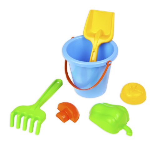 Kyblík o průměru 16cm / 1,4l, hrábě, lopatka, 3x formička