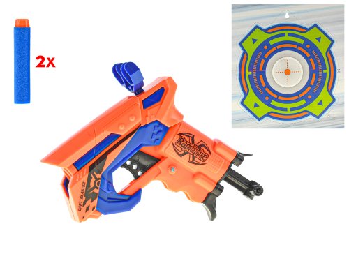 S touto pistolí si užijete spoustu zábavy. Balení obsahuje pistoli na natažení o velikost 11 cm. Součástí balení jsou 2 ks pěnových nábojů a terč.