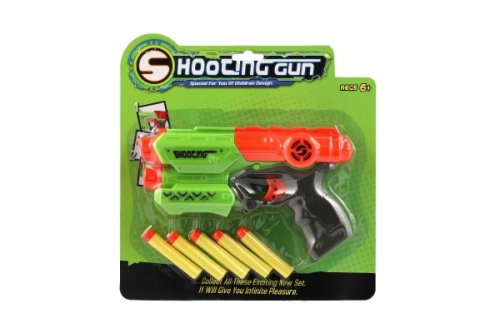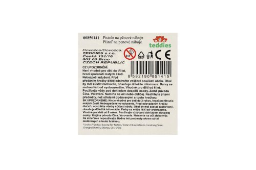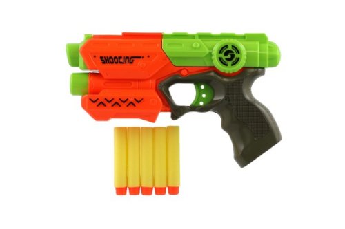 Hravá zábava nejen pro kluky! Pistole na pěnové náboje zabaví každého malého pistolníka. Náboj umístěte do komory pistole a natáhněte kohoutek. Teď už stačí jen dobře zamířit a vystřelit na jakýkoli cíl. Sada obsahuje 5 ks pěnových nábojů. Velikost pistole je cca 21 cm.