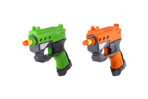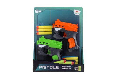 Hravá zábava nejen pro kluky! Pistole na pěnové náboje zabaví každého malého pistolníka. Náboj umístěte do komory pistole a natáhněte kohoutek. Teď už stačí jen dobře zamířit a vystřelit na svého protivníka! V balení jsou dvě pistole, ideální tak pro tebe i tvého kamaráda nebo sourozence. Každý budete mít k dispozici tři náboje a hra tak může začít! Velikost pistole: 12 cm Rozměr balení: 22 x 29 x 5 cm Vhodné pro děti od 6 let