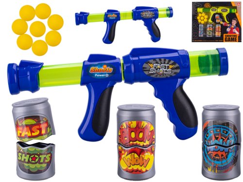 Pistole 42 cm na natažení s pěnovými náboji 8 ks a plechovkami 3 ks - mix barev (žlutá, modrá)