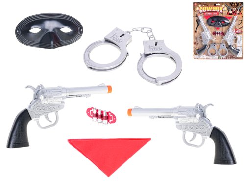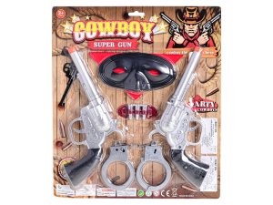 Co by to bylo za kovboje bez správné kovbojské výbavy. S touto sadou ukážeš všem postrachům jakou máš mušku a předvedeš své dovednosti. Balní obsahuje 2 ks kovbojské pistole, pouta a masku. Vhodné pro děti od 3 let.