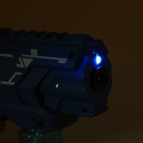 Užij si tisíce bublinek vystřelujících z této senzační pistole. Ideální pro hru venku nebo v interiéru. Pistole funguje na 3 ks baterí typu AA, které nejsou součástí balení. Našroubuj zásobník s bublifukem a zábava může začít! Náplň není součástí. Při zmáčknutí spouště se začnou vypuštět bubliny spolu se světelným i zvukovým efektem.