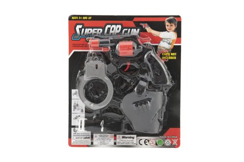 K oblíbeným dětským hrám patří hra na policisty. Kapsle 8 ran nejsou součástí balení. Sada obsahuje pistol velikosti 13 cm, pouzdro a pouta. Vhodné také jako doplněk ke karnevalovému kostýmu. Rozměry balení 20 x 24 x 4 cm. Vhodné pro děti od 3 let.