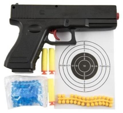 Hravá zábava především pro kluky! Pistole na pěnové náboje, vodní i gumové kuličky zabaví každého pistolníka. Vlož kuličky, nabij, zamiř a střílej. Velikost kuliček je 6 mm.Rozměr pistole: 20 cmRozměr krabičky: 23 x 15 x 4 cm.Vhodné pro děti od 8 let.