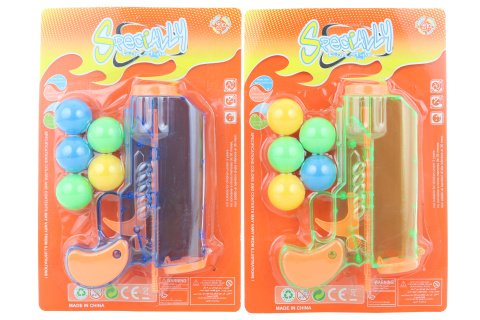 Vystřelovací pistole o velikosti cca 18cm vystřeluje plastové míčky. Balení obsahuje pistoli a pět míčků. Věk 3+