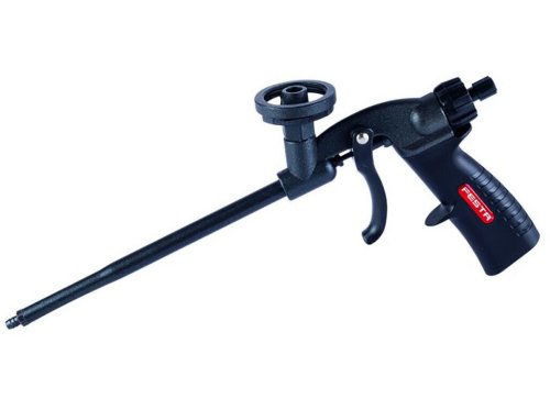 Profesionální celokovová pistole na PU (polyuratové) pistolové pěny s teflonovou povrchovou úpravou. Plynulá regulace množství pěny, citlivá spoušť pro přesné a pohodlné dávkování, plastové aplikační trubičky pro přesné nanesení pěny na požadované místo. Teflonová kulička ventilu, vyměnitelná tryska.