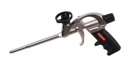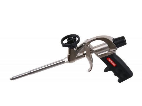Pistole na PU pěnu. Profesionální celokovová pistole na PU (polyuretanové) pěny. Plynulá regulace množství pěny, snadná údržba, závit pro uchycení s teflonovou vrstvou pro snadnější čištění, teflonová kulička ventilu, vyměnitelná tryska s možností nasazení plastové aplikační trubičky pro přesné nanesení pěny na požadované místo. Pistole pro práci s pistolivou PU pěnou, usnadňuje aplikaci i pohodlné a přesné dávkován PU pěny na potřebné místo. Stavebnictví, studnařství atd. EAN 8590804037149