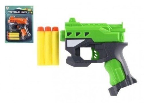 Pistole na pěnové náboje 12x14cm plast + 3 ks nábojů 2 barvy na kartě. Více barev - náhodný výběr. Věk: 3+