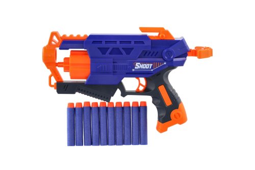 Připrav se na zábavnou střelbu! Tato plastová pistole na pěnové náboje má moderní design a snadné ovládání, takže je ideální pro napínavé souboje doma i venku. Skvělá volba pro malé akční hrdiny! Délka pistole: 28 cm Vhodné pro děti od 6 let