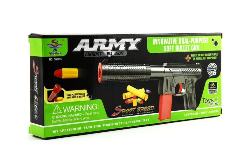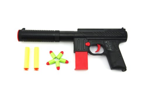 Sada obsahuje pistoli, která se bude líbit všem dětem, které si rády hrají se zbraněmi. Součástní jsou i pěnové náboje, které je možné z pistole střílet na jakýkoli terč. Vhodné od 6 let.