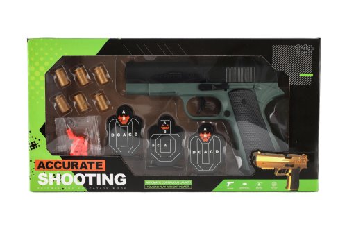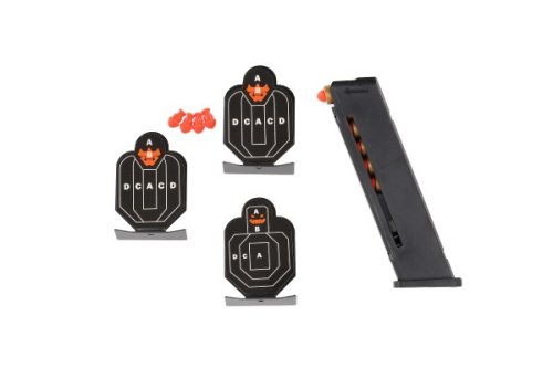 Nabij, zamiř a vystřel na terč! Podaří se ti trefit přímo střed? Můžeš si dát třeba turnaj o nejlepšího střelce se sourozencem! V balení najdeš 6 nábojů a tři terče! Zábava může začít! Rozměry balení 34 x 18 x 4,5 cm.