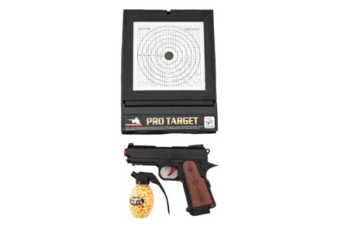 Kuličková pistole pro všechny, kteří si rádi hrají na vojáky, zloděje a policisty. Součástí je terč na trénování přesnosti střelby. Vhodné od 3 let.