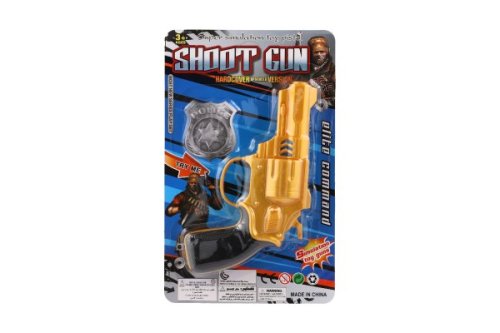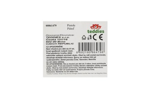 Oblíbenou hračkou všech kluků je pistole. Tato je velmi bezpečná, nepotřebuje žádné náboje. Vyznačuje se pouze zvukem setrvačníku. Rozměry výrobku 18 x 12 cm. Rozměry balení 16,5 x 26,5 x 4 cm. Vhodné pro děti od 3 let.