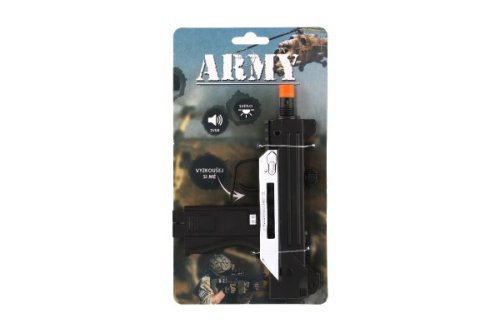 Pistole samopal je reálně vypadající zbraň z plastu pro děti, samopal se zajisté bude líbit všem klukům, kteří mají rádi zbraně. Po vložení baterií vydává zvuky a svítí. Rozměry samopalu: 17,5 cm Vhodné pro děti od 3 let