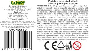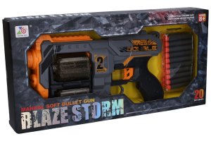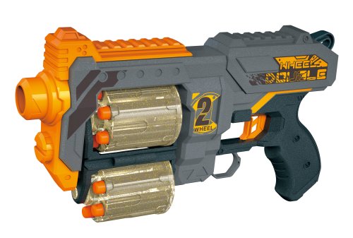 Pistole Wheel Double s pěnovými náboji. Rozměry 32,5x19x6,3 cm. Součástí 20 pěnových nábojů (5 standardních, 5 s přísavkou). Obrázkový návod s popisem na ovládání na zadní straně obalu. Střelba vložením náboje do zásobníků, natáhnutím mechanismu v zadní části zbraně, stiskem spouště.