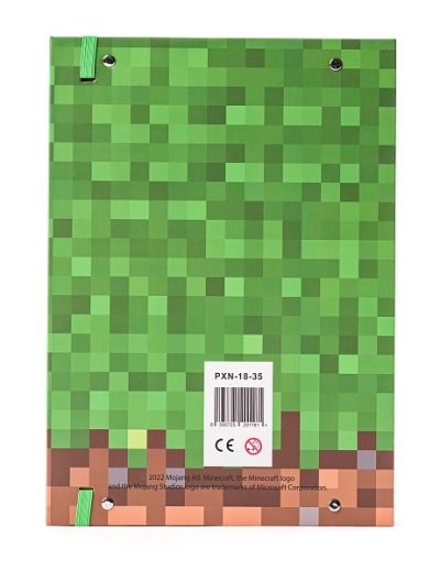 Zeleno-hnědé PIXIE CREW & MINECRAFT kartonové desky velikosti A4 jsou určeny především na sešity, učebnice anebo volné papíry. Desky jsou vyrobeny z tvrdého kartonu, jsou opatřeny jednou zelenou gumičkou, která zabrání samovolnému otevření, na vrchní a spodní části mají klopu, takže z nich nikdy nic nevypadne. Potisk je lesklý. Desky se dají otevřít a zavřít. Do desek můžete vložit až 7 sešitů velikosti A4. Na přední straně desek je obrázek Creepera ze světoznámé počítačové hry MINECRAFT, nad ním je pevně nalepený světle zelený PIXIE CREW panel, na který si můžete vyskládat pomocí Pixies (pixelů) úplně cokoli a kdykoli to můžete změnit. Celé desky jsou vně zelenohnědé. Na vrchní straně zelené ve spodní straně jsou hnědé. Uvnitř jsou kartonové desky bílé. Zelený panel je veliký 10x10 pixelů a celkový počet použitelných pixelů na panelu je 97. Součástí je balíček se 30 malými černými pixely pro sestavení obličeje CREEPERa. Rozměr produktu: 32 x 23 x 2,5 cm. Věk 6+