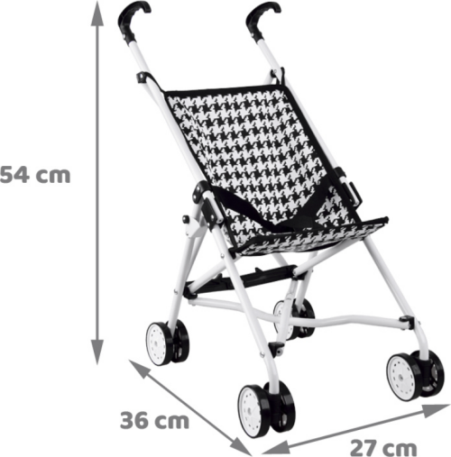 výška po rukojeť cca 54 cm šířka kočárku cca 27 cm délka kočárku cca 36 cm hloubka sedátka 14,5 x šířka 22 x výška opěradla 27 cm