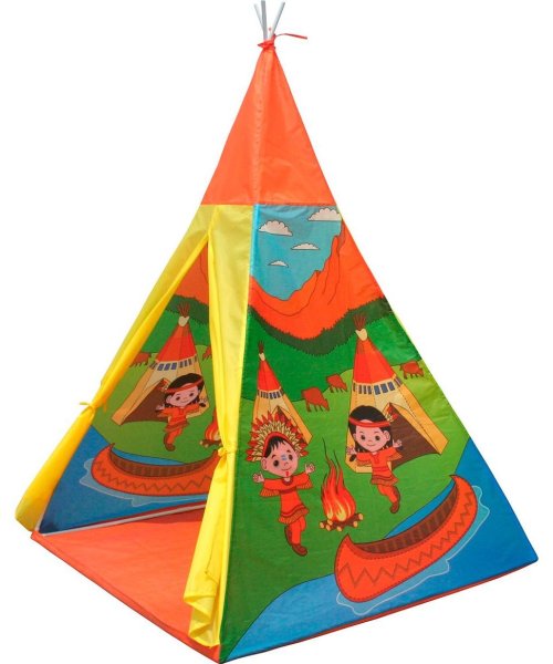 Dětský stan s indiánským motivem ve tvaru týpí. Stan zaujme svou veselou barevností na první pohled a zajistí zábavu na dlouhou dobu. Podpořte fantazii svého dítěte a pomozte mu postavit stan, který nemusí sloužit pouze při hře na obchod. Stejně dobře poslouží jako originální skrýš nebo osobní koutek, kde mohou děti odpočívat. Stan je vyroben ze 100% polyeteru (PES) a obsahuje plastové skládací tyče a spojnice. Stan lze jednoduše postavit i složit. Rozměry stanu po složení: 135 x 100 x 100 cm. Vhodné pro děti od 3 let.