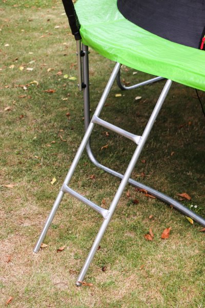 stabilní nohy ve tvaru písmene U odrazová plocha z kvalitního materiálu vnitřní bezpečnostní síť (brání doskoku do části s pružinami) vstupní otvor se zipem ocelová obruč bezpečností sítě elipsovité tyče ochranné sítě s bezpečnostním pěnovým krytem vnější umístění pružin s ochranným krytem kovový žebřík pro domácí venkovní použítí
