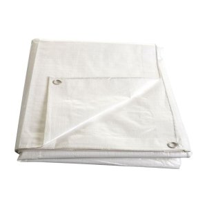 Bílá plachta, je vhodná například na zakrytí stavebních materiálů jako je písek či na dřevo.