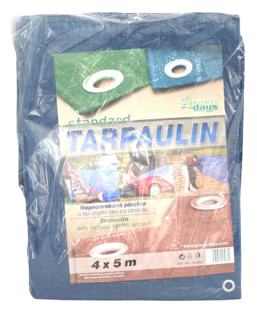 Plachta s oky 4 x 5 m je ideální pro zakrývání dřeva nebo stavebních materiálů, je vhodná také pro izolaci nebo stínící účely. Kovová oka, která jsou rozmístěná po 1 metru, slouží k jednoduchému a rychlému uchycení plachty.