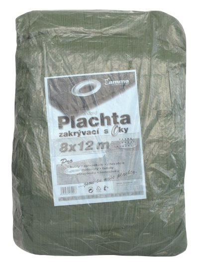 Plachta s oky 8 x 12 m je ideální pro zakrývání dřeva nebo stavebních materiálů, je vhodná také pro izolaci nebo stínící účely. Kovová oka, která jsou rozmístěná po 1 metru, slouží k jednoduchému a rychlému uchycení plachty.