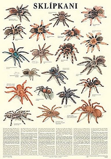 Sklípkani patří mezi nejatraktivnější pavouky chované v zajetí. V doprovodném textu se dozvíte, jaké druhy a jak je chovat v teráriích a další zajímavosti. Ilustrovali manželé Knotkovi.