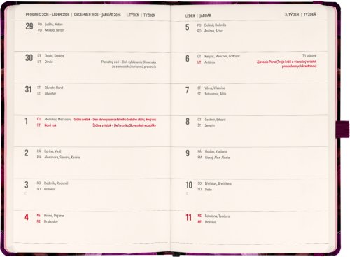 DVA SVĚTY. JEDEN PRODUKT. Hledáte dokonalou kombinaci plánování a zapisování poznámek? PLANBOOK vám přináší to nejlepší z obou světů! Perfektní spojení diáře a zápisníku - první polovina obsahuje čtrnáctidenní horizontální kalendárium s českými a slovenskými svátky, zatímco druhá polovina nabízí linkované stránky pro vaše poznámky. Praktický, stylový a dokonale přizpůsobený vašim potřebám - ať už si plánujete den, nebo přemýšlíte nad dalším velkým projektem. PLANBOOK je ideální pro všechny, kteří milují organizaci a kreativitu na jednom místě.