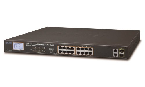 Jedná se o 16portový 10/100Mbit fast ethernet switch se 2x Gigabitovými TP/SFP rozhraními. Umožňuje napájet další zařízení jako jsou IP kamery, VoIP telefony a WiFi přístupové body. Zařízení disponuje plně propustnou rychlou interní páteřní sběrnicí. Gigabitová rozhraní poskytují další možnosti rozšiřitelnosti, flexibility a integrace v síti. LCD displej na předním panelu informuje o aktuálním vytížení PoE.