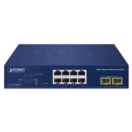Spravovatelný switch nabízející 8 portů 10/100/1000 Base-T a 2 SFP sloty 100/1000 Base-X.