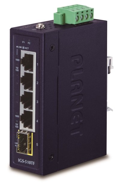 5portový přepínač (4 x RJ45 10/100/1000BaseT + 1 x SFP 1000Base-SX/LX/BX) pro průmyslové aplikace.