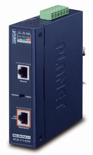 Průmyslový "Power over Ethernet Injector" IEEE 802.3bt s maximální zatížitelností 95 W pro napájení zařízení po Ethernetu. Designovaný pro použití s kamerami PTZ, dotykovými monitory, VoIP aparáty, POS (point of sale), kiosky, PoE osvětlení nebo Wi-Fi přístupovými body.
