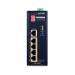 Průmyslový přepínač PoE+ (802.3af/at), 4x RJ-45 port 10/100 Base-TX s PoE+ injektory (až 36 W/port), 1x RJ-45 10/100 Base-TX (bez PoE), celkový výkon 120 W (při napájení DC 48 V).