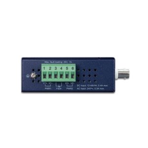 Průmyslový ethernet extender (konvertor) pro převod/modulaci RJ-45 sítě na koaxiální nebo 2drátový UTP kabel. Umožňuje prodloužit dosah sítě až na 1,2 km při rychlosti 300 Mbps. Disponuje jedním BNC portem, jedním RJ-11 portem a 4 gigabitovými RJ-45 porty (10/100/1000 Base-T) pro standardní ethernet do 100 m.
