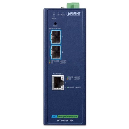 Průmyslový 10G konvertor pro snadný přechod mezi metalickým a optickým vedením (10G/5G/2.5G/1G/100M Base-T na 10G/2.5G/1G/100M Base-X s duálním SFP+ portem).