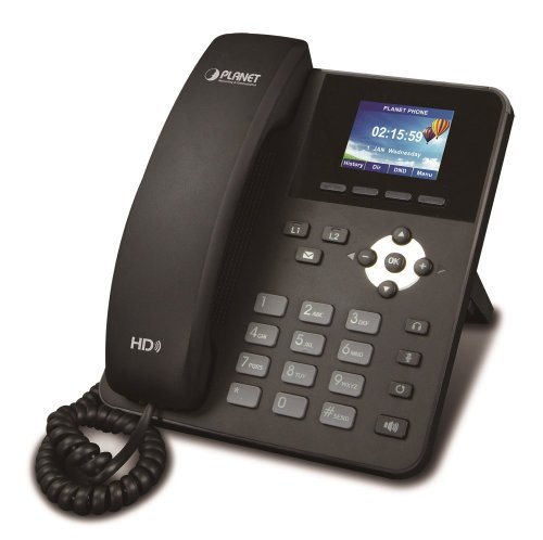 VoIP SIP telefon, barevný 2,4" LCD, podpora HD audio kodeku G.722. 2 SIP účty, definovatelná tlačítka, zobrazuje CLID volajícího, 3cestná konference, zasílání SMS.