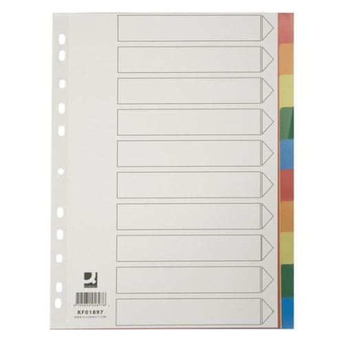 Plast.rozliš.Q-Connect-A4,barevný okraj,10 listů