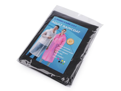 Pláštěnku využijete kdekoli, kde vás přepadne déšť. Je vyrobená z pevného materiálu, kapuce má stahovací šňůrku. Pláštěnka se zapíná na druky, je vložená do plochého sáčku. Pláštěnka měří: zadní délka cca 113 cm, délka rukávu (měřeno od kapuce po konec rukávu) 75 cm, obvod hrudi 130 cm.