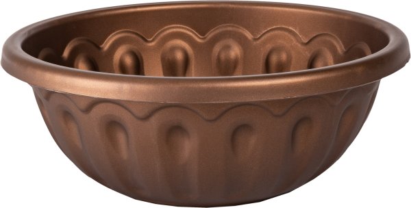 Plastová žardina s vrchním průměrem 18 cm, spodním průměrem 9,3 cm.