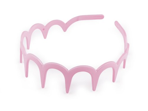 Plastová čelenka s obloučky a velkými zuby má lesklý a hladký povrch. Je vyrobená z kvalitního plastu, velmi dobře ve vlasech drží. Můžete ji využít jako základ k dalšímu dozdobení a vytvořit si tak jedinečný kousek přímo na míru pro vás. Ozdoby můžete nalepovat nejlépe lepidlem na textil nebo tavnou pistolí.
