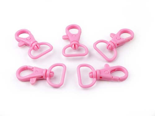 Plastová karabina s otočnou hlavou se hodí k upevnění popruhů k dětským taškám, batůžkům apod. Má malou hmotnost, hodí se i na výrobu šňůrek na krk.
