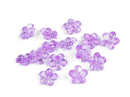 Knoflíky z transparentního plastu upoutají pozornost tvarem květu. Mají spodní přišívání. Můžete je našít na dívčí halenky, šaty, svetry apod. Vyniknou i jako dekorace tašek, pytlíků, čelenek do vlasů či kapsářů. Dají se přišívat vlnou. Pokud je v kombinaci s korálky navléknete na pruženku či jiný návlekový materiál, vznikne zajímavý náramek na ruku (ideální pro děti nebo na retro párty). Balení 5 g obsahuje cca 14 ks knoflíků.