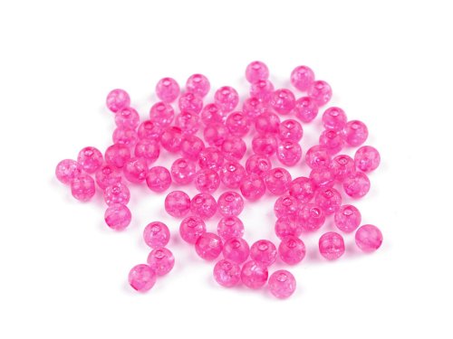 Plastové korálky s efektem kraklé - prasklin lidově nazývaných práskačky, jsou velice variabilní. Mají všechny výhody plastových korálků - jsou lehoučké, mají dostatečně velký průvlek, aby jimi prošly i stužky nebo voskované šňůry. Našim fotografkám se fotografie velmi povedly, ale věřte, že ve skutečnosti jsou korálky ještě zajímavější. Vzhledem ke způsobu zpracování plastů upozorňujeme, že na některých korálcích mohou být na pohled či na dotek patrné zbytky spojů. V balení 30 g je cca 270 ks korálků.