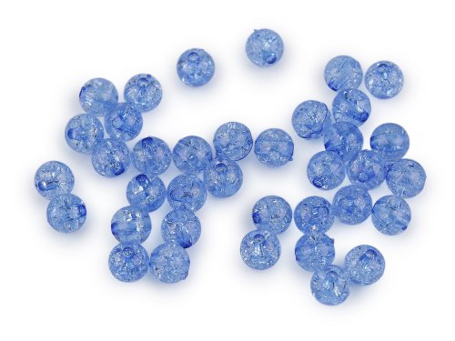 Plastové korálky s efektem kraklé, tedy prasklin, lidově nazývaných práskačky, jsou velice variabilní. Mají všechny výhody plastových korálků - jsou lehoučké, mají dostatečně velký průvlek, aby jimi prošly i stužky nebo voskované šňůry. Vzhledem ke způsobu zpracování plastů upozorňujeme, že na některých korálcích mohou být na pohled či na dotek patrné zbytky spojů. V balení 30 g je cca 106-110 ks korálků.