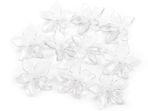 [Půvabný plastový květ v transparentních barvách nadchne především korálkářky, které rády tvoří květinové šperky.