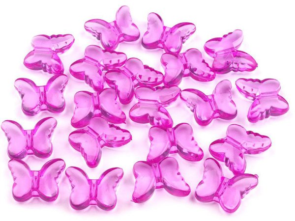 Transparentní plastový korálek ve tvaru motýla je vhodný pro výrobu dekorací a bižuterie.