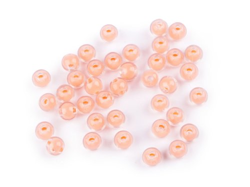 Průhledné plastové korálky s barvou uvnitř jsou velice efektní, oblíbí si je dospělí i děti. Využijete je na výrobu bižuterie, přívěskům ke klíčům apod. Můžete je navlékat například na pruženku či silon. Děti si mohou sami navléci jednoduchý náramek z pruženky, bude velice působivý. V balení 10 g je cca 40 ks korálků.