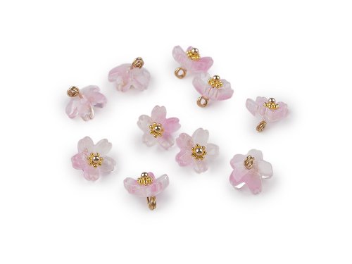 Plastové korálky květů s kovovým středem nadchnou svým jemným a autentickým zpracováním. Mají zajímavé probarvení, ocení je korálkářky, které rády tvoří květinové šperky, ale jsou vhodné i k dozdobení různých postaviček víl a skřítků. Kovový střed je na zadní straně zpracovaný do očka, korálek se dá zavěsit jako přívěsek nebo navléknout či naketlovat samostatně. Je vhodný i na vytváření celých květinových hroznů, které budou vypadat velice půvabně.